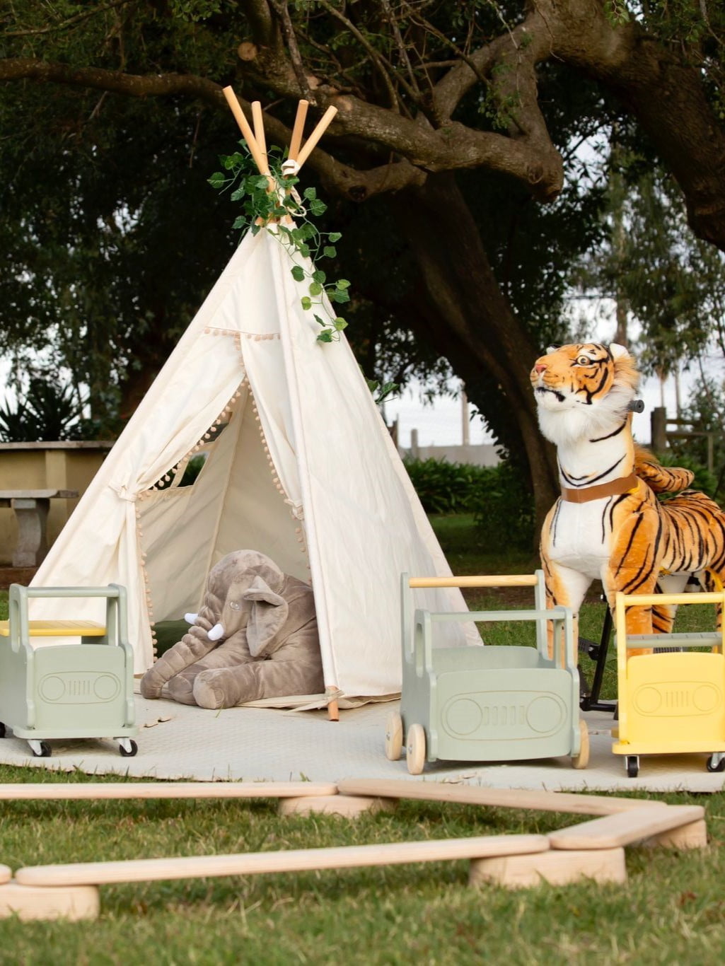 Descripción general: Esta plaza incluye animales de la selva y una gama de colores que se adaptan perfecto a cumpleaños temáticos de Safari. Una propuesta  ideal para espacios reducidos.